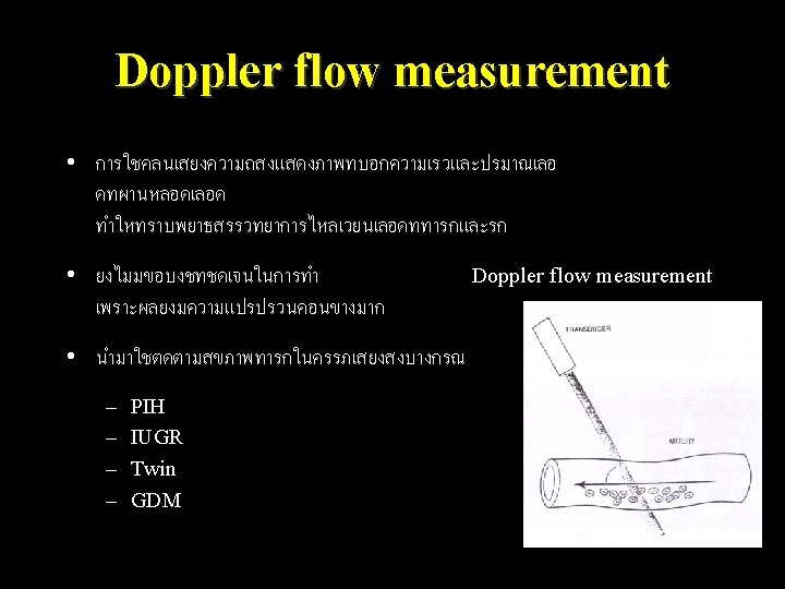 Vessels • • Umbilical artery Renal artery Uterine artery Middle cerebral artery