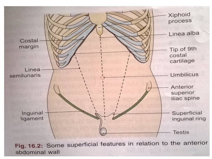 BONY LANDMARKS AROUND ABDOMEN Iliac crest Ant Sup iliac spine Pubic crest Inguinal ligament Costal margin Xiphoid process
