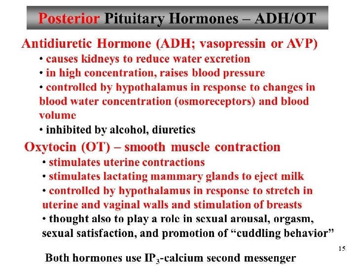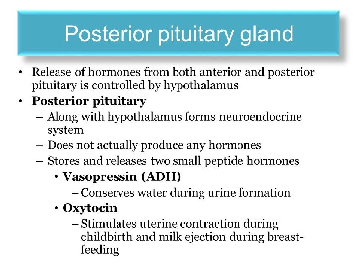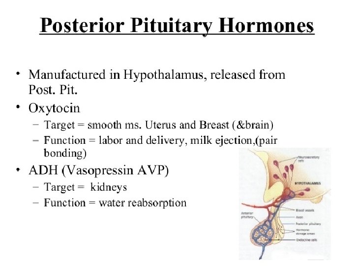 OBJECTIVES OF POSTERIOR PITUITARY HOMRONES Posterior Pituitary Hormones ADH �Water regulation Oxytocin �Milk secretion �Parturition Disorders Summary