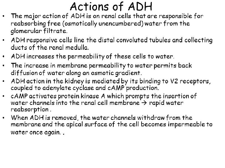Mechanisms of hormone action 1. Action on the cell membrane receptors a) Through alteration of intracellular c. AMP concentration ACTH, Adrenaline, Calcitonin, Glucagon, FSH, LH, PHT, some hypothalamic RH, TSH, Vasopressin (via V 2 -rec. ) Alteration of protein kinase A Regulation of cell function: Ca 2+ acting as a third messenger in some situations