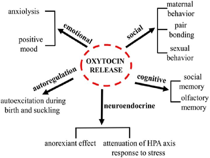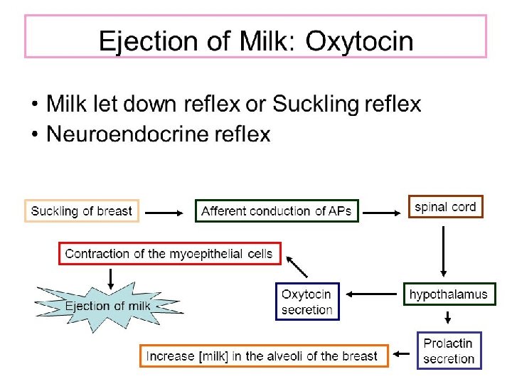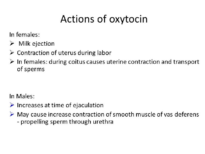 KEY: C: OXYTOCIN GH, Insulin, Prolactin act directly through transmembrane activation of tyrosine kinase activity b) FSH, LH, TSH act through alteration of intracellular c. AMP concentration c) Oxytocin and Vasopressin (via V 1 -rec. ) release of intracelullar Ca 2+ and protein kinase C activation d) TSH through alteration of intracellular c. AMP a)