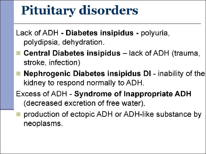 DISORDERS OF ANTERIOR & POSTERIOR PITUITARY