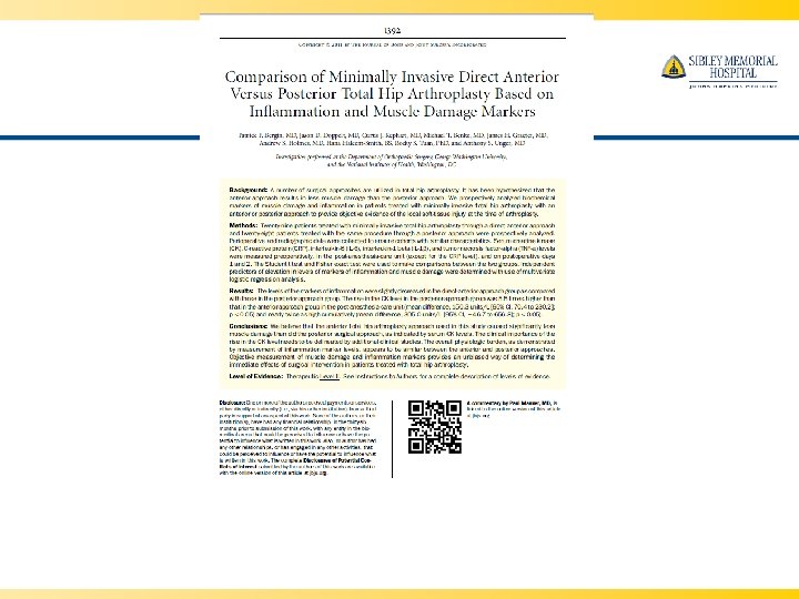 ANTERIOR HIP REPLACEMENT SIBLEY HOSPITAL RAPID REHAB PROGRAM FOR JOINT REPLACEMENT SURGERY Presented by: ANTHONY S UNGER, MD 1