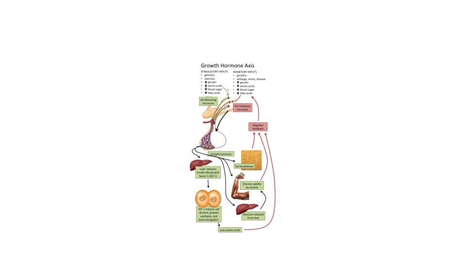 Where does it come from? • Synthesized and secreted by somatotroph cells (anterior pituitary) in response to growth-hormone releasing hormone (GHRH) from the hypothalamus • Activates gene transcription by cyclic adenosine monophosphate (c. AMP) mechanisms