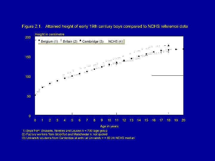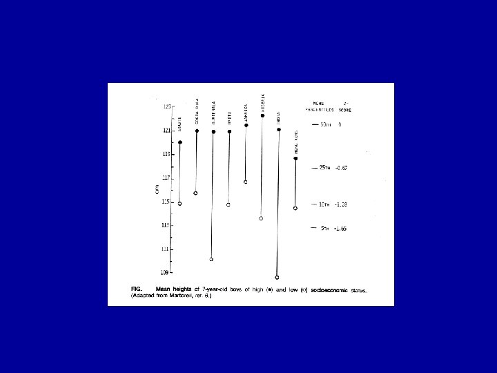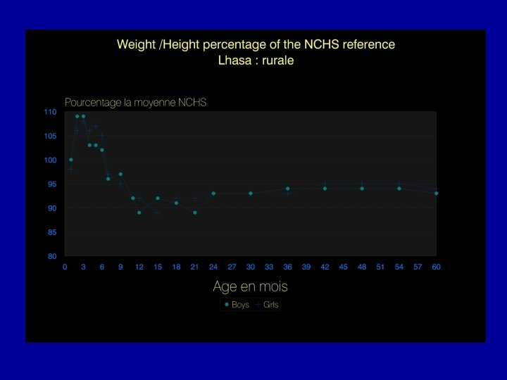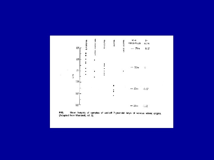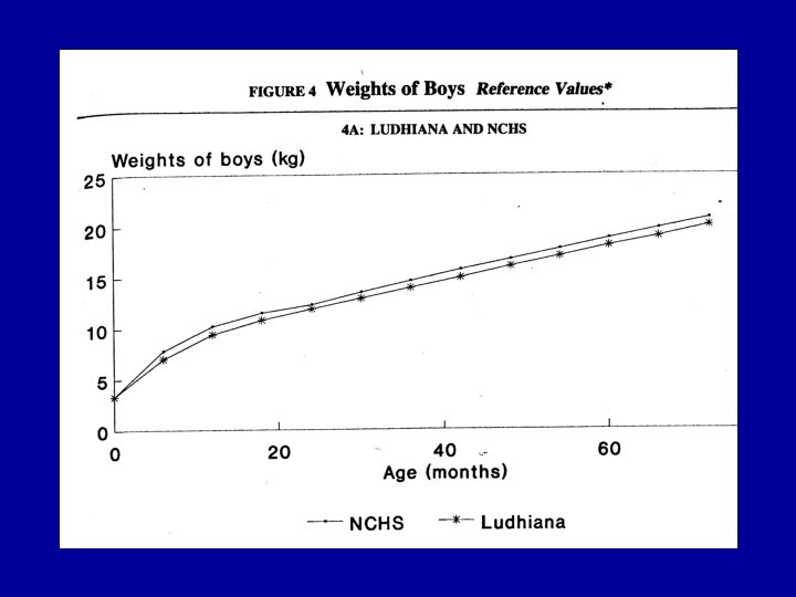 Criteria for a reference • 1. Measurements should relate to a well-nourished population. • 2. Sample : at least 200 individuals in each age and sex group. • 3. Sample: cross-sectional, since the comparisons that will be made are of a cross-sectional nature. • 4. Sampling procedures should be defined and reproducible. • 5. Measurements should be carefully made and recorded by observers trained in anthropometric techniques, using equipment of well tested design and calibrated at frequent intervals. • 6. The measurements made on the sample should include all the anthropometric variables that will be used in the evaluation of nutritional status. • 7. The data from which reference graphs and tables are prepared should be available for anyone wishing to use them, and the procedures used for smoothing curves and preparing tables should be adequately described and documented.