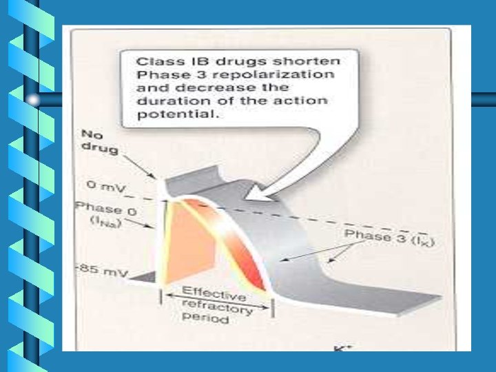 Class 1(B) • Lidocaine • Shorten the duration of A. P. & R. P. • Effective in ventricular arrhythmias.