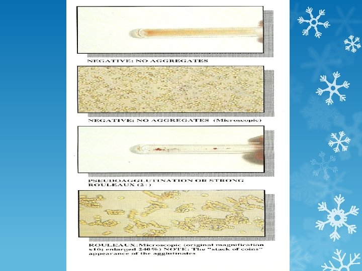 Interpretation 5. Are the cells truly agglutinated, or is rouleaux present? Serum from patients with altered albumin to globulin ratios (e. g. , patients with multiple myeloma) or who have received high molecular weight plasma expanders (e. g. . dextran) may cause nonspecific aggregation of RBCs, known as rouleaux. Rouleaux is not a significant finding in antibody screening tests, but it is easily confused with antibody mediated agglutination.
