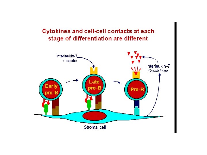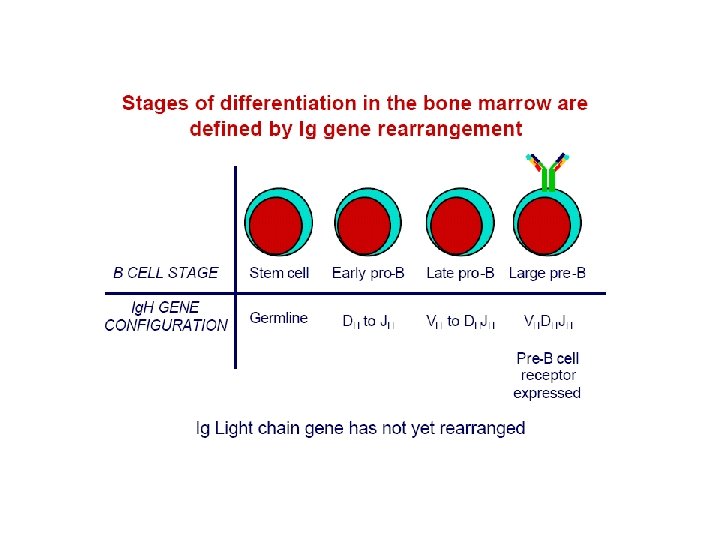 Lymph. maturation • Maturation of lymphocytes from bone-marrow stem cells consist of 3 types of processes: • proliferation of immature cells • expression of ag receptor genes • selection of lymphocytes that express useful ag receptors. • B cell maturation depends on the rearrangement of the Ig DNA in the haemapoetic stem cells