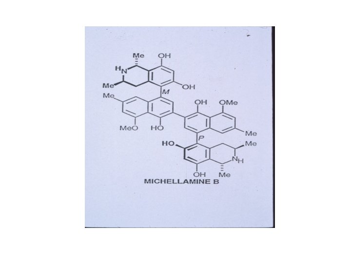 MICHELLAMINE B Potential Anti-AIDS Agent Discovery and Development • 1987: Collected liana Ancistrocladus korupensis leaves. Korup National Park, Mundemba, S. West Cameroon. Dr. Duncan Thomas (MBG) and Mr. Ndembe (Forestry Dept. ). • New species (Thomas & Gereau, Novon, 1993, 3, 494 -498). • 1989: Michellamine B isolated. Active against a range of HIV-1 and HIV-2 strains (Boyd et al. , J. Med. Chem, 1994, 37, 1740 -45). • Sufficient isolated from fallen leaves for preclinical development.