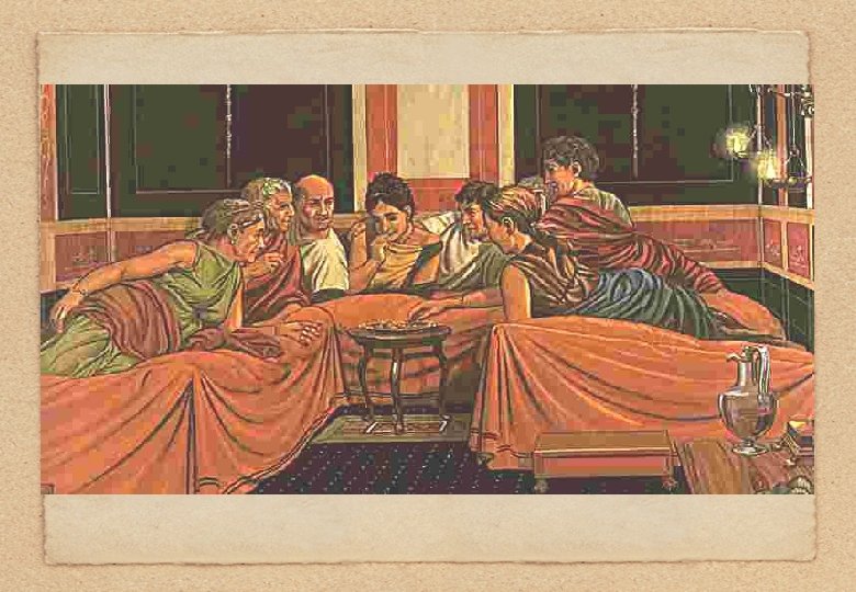 ”Coena” Il pasto principale era la ”coena”. Avveniva dopo il solito bagno nelle terme. Avolte durava anche fino all`alba del prossimo giorno.