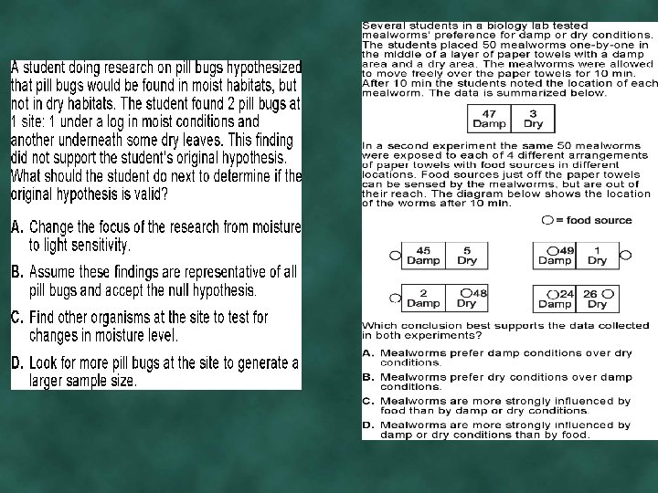 Water Potential ⌂ Tendency of water to leave one place in favor of another. ⌂ Always moves from higher to lower water potential. ⌂ Affected by pressure and solute ⌂ Water potential ( ) = pressure potential ( p) + solute potential ( s) ⌂ Solute Potential = s=–i. CRT • i = The number of particles the molecule will make in water; for Na. Cl this would be 2; for sucrose or glucose, this number is 1 • C = Molar concentration (from your experimental data) • R = Pressure constant = 0. 0831 liter bar/mole K • T = Temperature in degrees Kelvin = 273 + °C of solution ⌂
