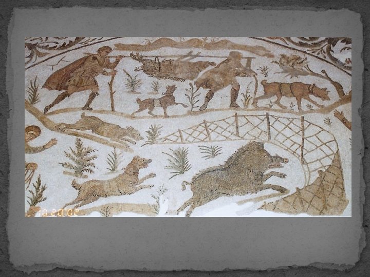 Lov a rybolov - Římané se intenzivnímu lovu začínají věnovat až od 2. st. př. Kr. - do té doby jen činnost otroků nebo v rámci náboženských slavností - lov jako sport - vlivy z východu - 2 hlavní způsoby lovu - venatio - lov na čtvernožce - od zajíce po vysokou – loví se pěšky nebo na koni - kopí, prak, nůž - součástí lovu jsou lovečtí psi - aucupium - lov na ptáky - používání návnad a pastí - v době císařství se konají zinscenovaná představení v amfiteátru - uměle vytvořené prostředí - lov exotických zvířat - rybolov je zaměstnáním, ale také způsob, jak trávit volný čas - k lovu se používá – udice s háčkem, sítě, vrše, trojzubce