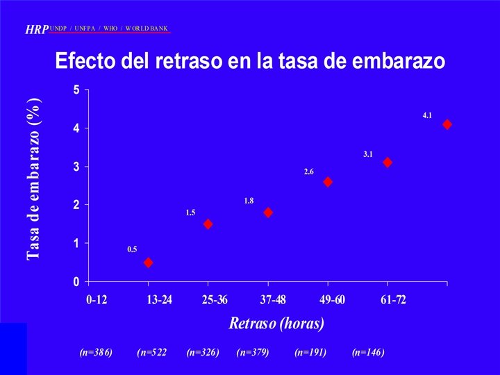 EFICACIA DE LAS PASTILLAS PARA LA ANTICONCEPCION DE EMERGENCIA (PAE) ICMER Tasa de Embarazo: • L-Ng día 1 a 3: 1. 1% (11 / 976) • L-Ng día 4 y 5: 2. 4% (4 / 164) • Yuzpe día 1 a 3: 3. 2% (31 / 979) Embarazos que se evitan: • L-Ng día 1 a 3: 79% - 85% • L-Ng día 4 y 5: 60% - 63% • Yuzpe día 1 a 3: 57% - 74. 1%