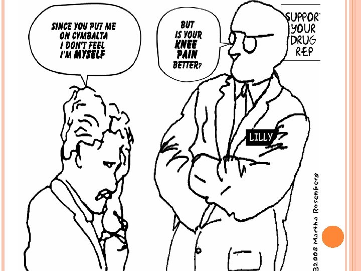 SSRIS SIDE EFFECTS Many disappear within 4 weeks (adaption phase) Side effects more manageable compared to MAOIs and TCAs Sexual side effects are common SSRI cessation syndrome Brain zaps Sexual dysfunction