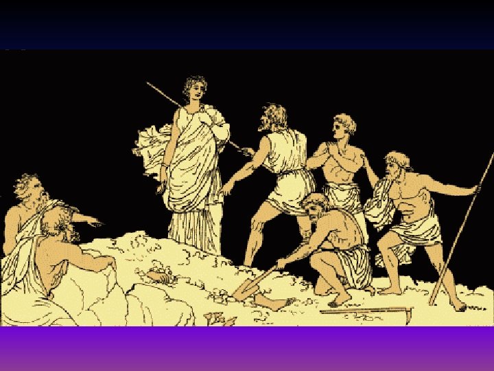 III. DEJSTVO: • Haimon predstúpi pred otca, hoci vie, že ten zo všetkého najviac oceňuje poslušnosť. • Rozvážne mu pripomína, že občania Téb nepokladajú jeho rozhodnutie za spravodlivé. • K: Mám vládnuť v mene iných a nie vo vlastnom? H: Ak štát si niekto prisvojí, je po štáte. K: Či nepatrí štát tomu, kto v ňom vládne? H: Musel by si vládnuť pustej zemi!
