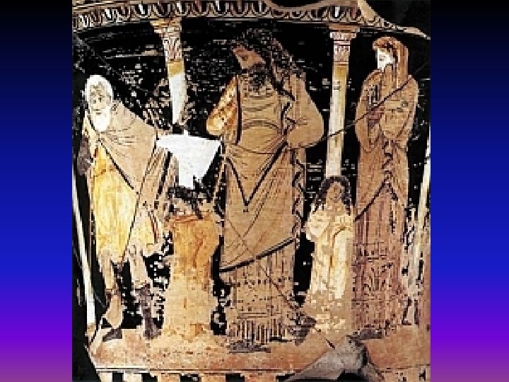 SOFOKLES • najznámejší staroveký grécky dramatik • najprv herec, neskôr autor tragédií • inovoval grécke divadlo (v jeho hrách vystupovali 3 – 4 herci, menej priestoru dostal chór)