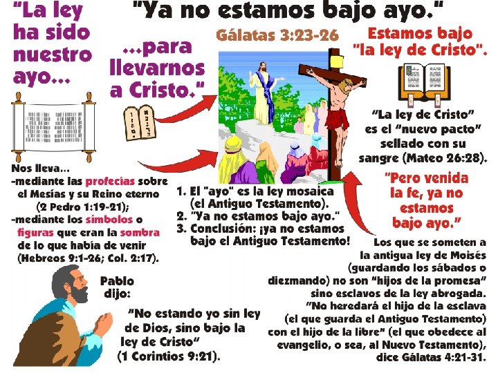ANTIGUO Y NUEVO TESTAMENTO • • • ANTIGUO TESTAMENTO Era copia y sombra. Heb. 8: 5. Es un velo en el rostro de la persona. II Cor. 3: 13, 15. Es antiguo y envejece, desaparece. Heb. 8: 13. Fue clavado en la cruz. Col. 2: 14. La ley y los profetas proclamaron hasta Juan. Mat. 11: 13; Lucas. 16: 16. Es caer bajo maldición. Gal. 3: 10. • • • NUEVO TESTAMENTO Es lo verdadero. II Cor. 3: 18. Es quitado ese velo. II Cor. 3: 16, 18. Es Nuevo. Heb. 8: 13. Fue confirmado en la cruz. Ef. 2: 13 -14. Se sigue anunciando hasta que Cristo venga. Mat. 28: 20. Tenemos todas las bendiciones espirituales. Ef. 1: 3.
