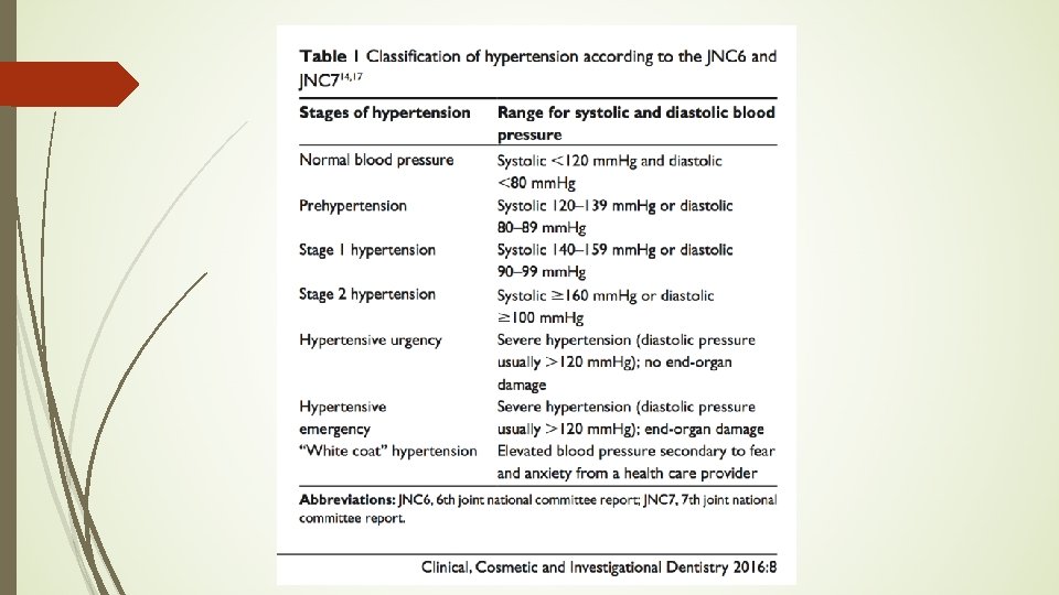 Two Main Types of Hypertension �Primary: 90 -95% of all �Secondary: caused by � vascular diseases � Cushing’s syndrome �Sleep apnea, hormonal dysfunction, substance abuse, alcohol consumption, contraceptive use, and chronic kidney disease