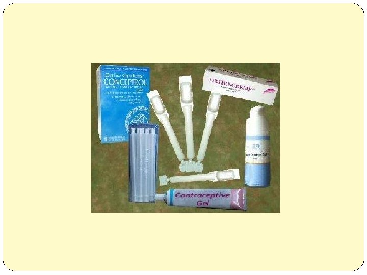 Spermicidy ü vaginální čípky nebo gely ü účinnost 95% ü zavádí se do pochvy 10 min před každým pohlavním stykem ü účinnost zavedené antikoncepce je 1 hodina ü zavádí se před každým pohlavním stykem ü je vhodné kombinovat tuto metodu s jinou antikoncepční metodou