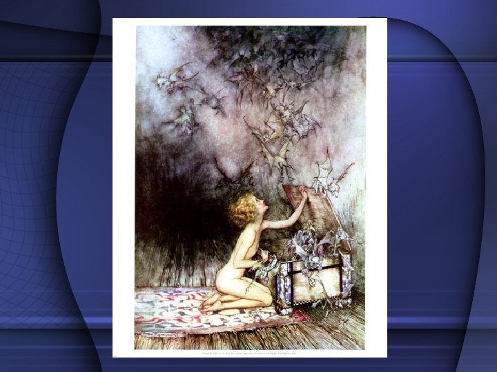 PANDOROS SKRYNIA • Pandora - pirmoji moteris, sukurta Dzeuso kaip dalis bausmės žmonijai už tai, kad Prometėjas pavogė ugnies paslaptį. Pandoros ir jos vyro (Prometėjo brolio) namuose stovėjo aklinai uždarytas indas, kuriame tūnojo visos ligos, senatvė ir ydos.