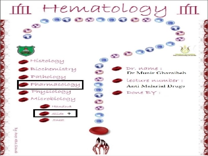 Antimalarial Drugs Munir Gharaibeh, MD, Ph. D, MHPE Department of Pharmacology Faculty of Medicine October 2014
