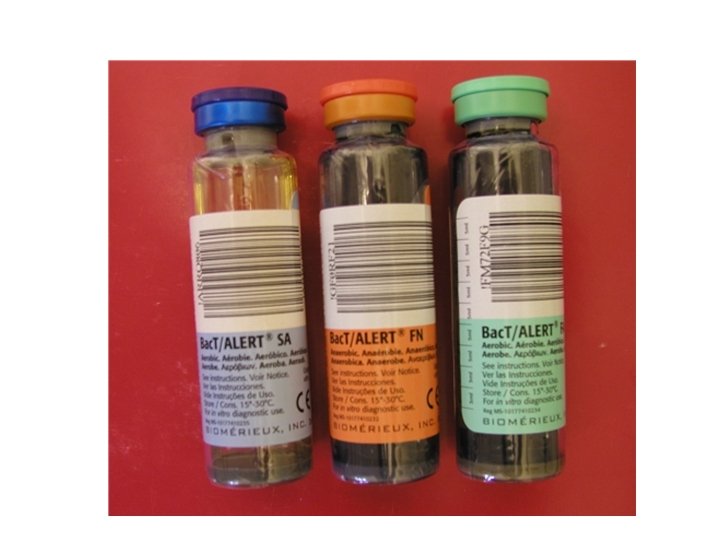 Optimální objem odebrané krve • koncentrace mikrobiálního inokula v periferní krvi: u dospělých obvykle do 1 CFU na 1 ml odebrané krve – u malých dětí je obvykle koncentrace inokula vyšší • význam optimálního objemu krve pro hemokultivaci: zvýšení objemu odebrané krve ze 40 na 60 ml zvýšilo výtěžnost hemokultivace o 10% (Maki D, et al. ) – ředění krve bujonem 1: 5 až 1: 10 vede k optimálnímu zotavení mikrobiálního inokula • dospělí celkem) • děti 20 až 30 ml na jeden odběr (40 až 60 ml 1 až 5 ml na jeden odběr (podle věku)