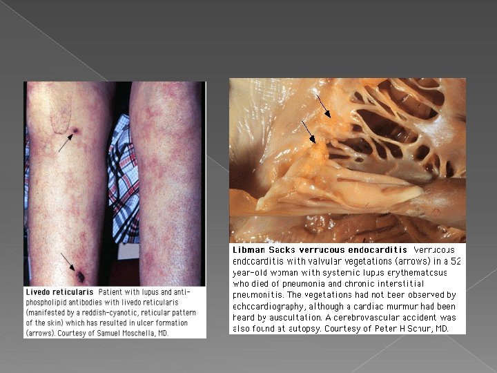 CLINICAL MANIFESTATIONS Cardiovascular Thrombosis (A, V) CNS Hematologic manifestations Cutaneous Renal disease Pregnancy loss Ocular manifestation s Gastrointest inal disease Adrenal disease Osteonecrosis — Pulmonary disease