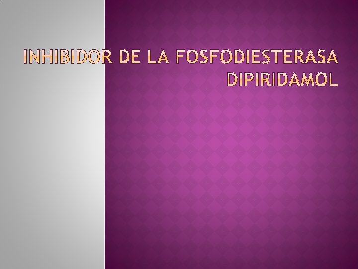 � Estos inhiben la enzima que degrada el AMPc lo que ocasiona un aumento de los niveles intraplaquetarios de este, dificultando la activación de plaquetas, además reduce la adhesión plaquetaria. � Vaso dilatador coronario que también inhibe la agregación plaquetaria, debe ser combinado con otros fármacos anticoagulantes, como la wafarina, para prevenir la trombosis, la asociación aspirina-dipiradamol se utiliza para la prevención de ictus.