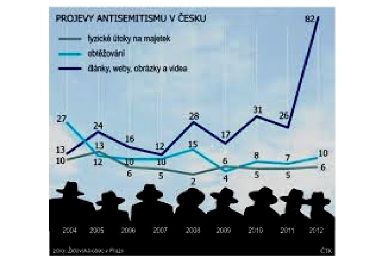 Hlavní subjekty antisemitismu v ČR V první polovině 90. let bylo nejsilnějším reprezentantem krajní pravice Sdružení pro Republiku - republikánská strana Československa (SPR-RSČ). Národní sjednocení (NSJ) česká krajně pravicová strana křesťansko- konzervativního zaměření. Hlásí se k odkazu prvorepublikové strany stejného jména Působí od roku 2002 Témata: proti EU, pro zavedení trestu smrti, proti homosexualitě, proti přistěhovalbům