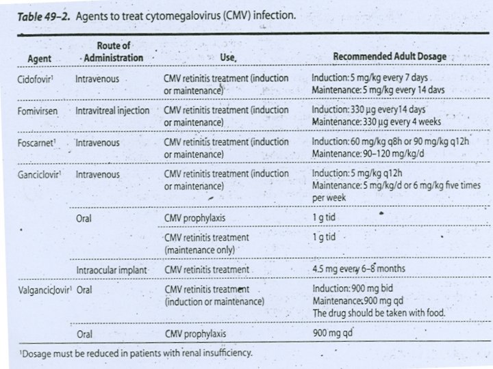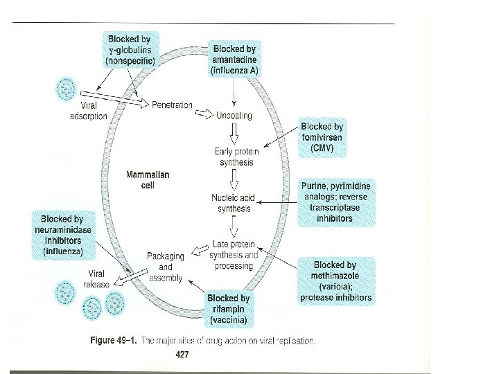 • Resistance: Can be developed due to deficient or alteration of thymidine kinase and or alteration DNA polymerases. • Cross resistance: to valcyclovir, famiciclovir and gancyclovir • but no cross resistance for cidofovir (Cytomegalovirus drug)? Why (see Fig 49 -2)