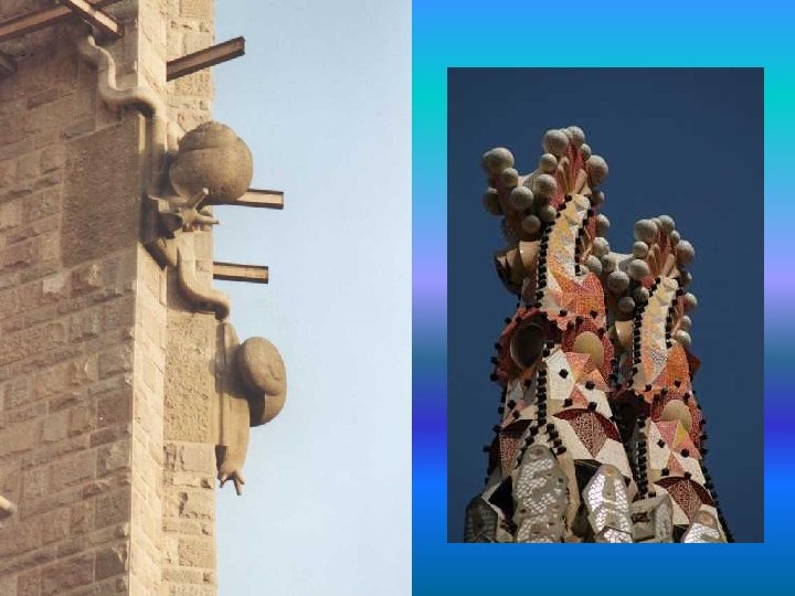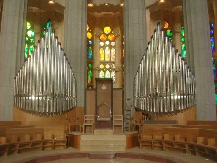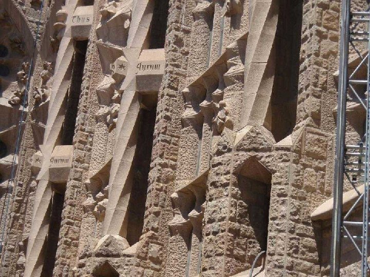 Aunque en algunos momentos las formas de la Sagrada Familia puedan recordar el estilo gótico, nada más lejos de la realidad en su esencia. Los pilares o columnas están inclinados, precisamente para contrarrestar un pequeño desplazamiento lateral. La desbordante riqueza de figuras y elementos decorativos de la fachada de la Natividad, se torna más sobria en la parte interna. Las dos fachadas existentes, de la Natividad y la Pasión, han podido ser edificadas como si fueran construidas independientes del resto del Templo. La Catedral de Colonia, muy admirada por Gaudí, le sirvió en algunos momentos como fuente de inspiración para algunos detalles de este proyecto, tras adaptarlos a su particular manera de concebir la arquitectura. Las controvertidas esculturas son del artista Josep M. Subirats que, según la opinión de algunos críticos, pertenecen a un estilo contemporáneo que no encaja con las que fueron aprobadas y colocadas durante la vida de Gaudí en la fachada de la Natividad.