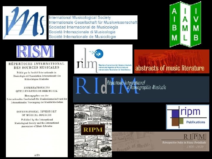 Publicaciones Serie A/II(Manuscritos desde 1600) -Índice de la base de datos en microficha (1986) -CD-ROM acumulativo (1985 -2010) -Base de datos gratuita online (2010 -) Eds. : De Gruyter / Saur Verlag NISC, EBSCO, Georg Olms Fuentes de más de 900 archivos, bibliotecas, museos, iglesias, escuelas y colecciones privadas de más de 35 países Información bibliográfica completa de 850. 000 registros catalográficos Música manuscrita, impresa, libretos y tratados teóricos. Actualización mensual