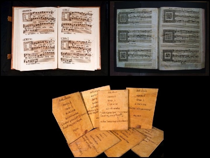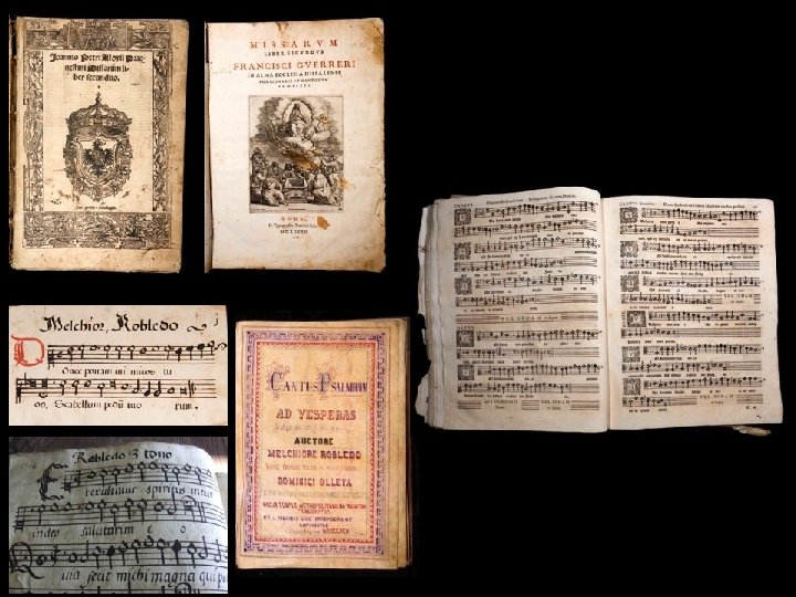 Cantorales impresos con obras de G. P. da Palestrina y F. Guerrero (Teruel), & cantorales manuscritos (Josquin Desprez, Zaragoza; Joan Pujol, Barcelona)