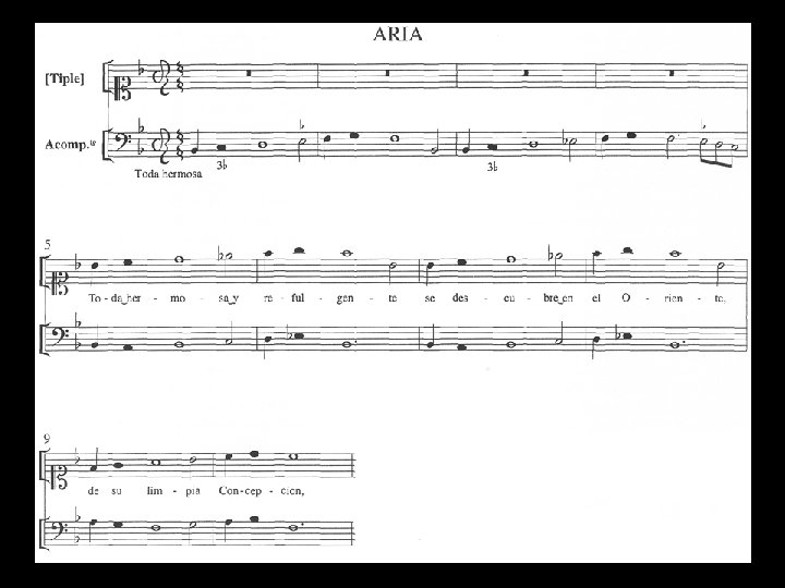Sebastián Durón, Villancico al Santísimo, a 5 E-Bbc, M 1478 -7 Tiple. Compás ternario (de proporción menor). Acentuación tética (sin ennegrecimientos)
