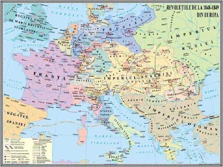 CONCLUZII În 1848 Republica franceză a rostit trei cuvinte: LIBERTATE, EGALITATE, FRATERNITATE şi declarat prietenie şi alinaţă tuturor popoarelor. Revoluţia din Ţările Române a fost înfrântă datorită intervenţiei imperiilor vecine. Revoluţiile de la 1848 au deschis calea înfăptuirii de reforme de care întreaga Europă avea nevoie şi cadrul necesar înfăptuirii unităţii naţionale acolo unde popoarele năzuiau la acest vis.