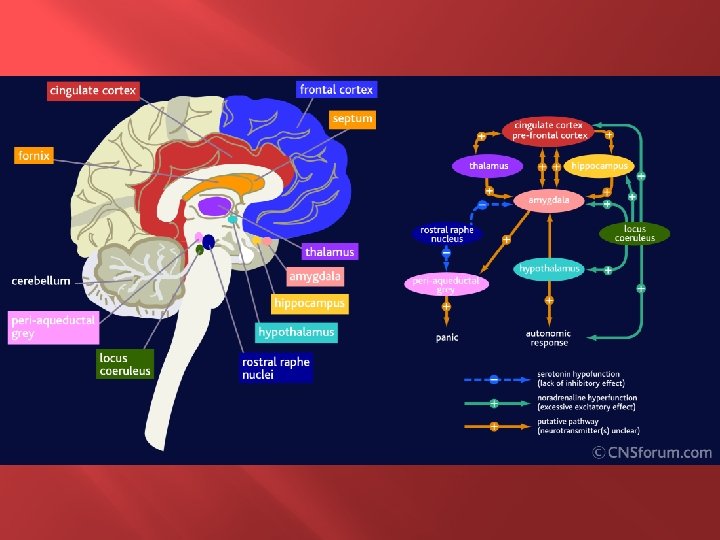 The Brain & Anxiety � People with high anxiety lock onto worry and can’t let go � Their brains are haunted with horrific scenarios that present as quite real and can’t be ignored � Norepinephrine and serotonin are neurotransmitters which play a role in anxiety � Locus coeruleus controls norepinephrine production & the lower bowel