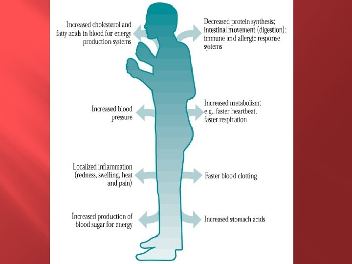 Stress � What is it? � Our response to external conditions (stressors) which effect our thoughts, feelings, and bodies � Stressors: � Adrenaline & Cortisol: chemicals that are released in our bodies when we experience stress