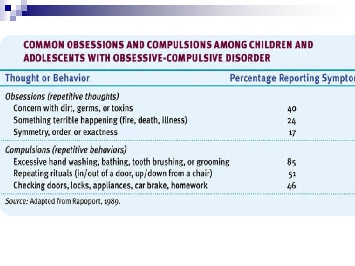 Anxiety Disorders n There are several different kinds of anxiety disorders: Anxiety Disorders Generalized anxiety disorder Panic disorder Phobia Obsessivecompulsive disorder Posttraumatic stress disorder