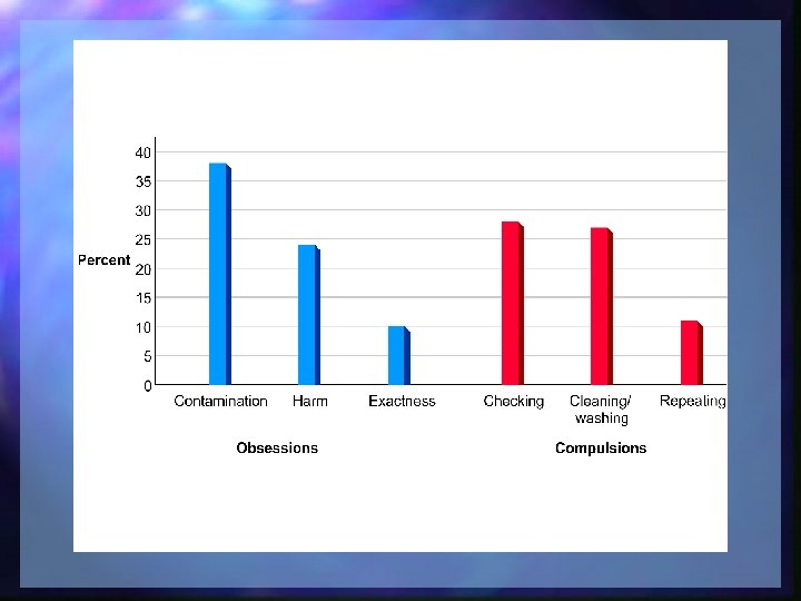 Obsessive-Compulsive Disorder • Description: persistent, upsetting, and unwarranted thoughts (obsessions) that motivate repetitive behaviors (compulsions) – obsession causes anxiety, compulsion reduces it – equally common in men and women – often associated with depression