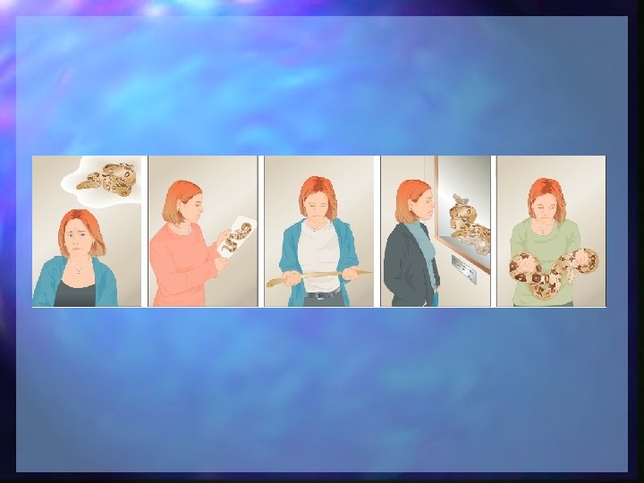 Exposure Therapy • hierarchy of fearful stimuli • learn relaxation methods • gradual exposure to imagined stimuli in relaxed state • substitute real stimuli Joseph Wolpe