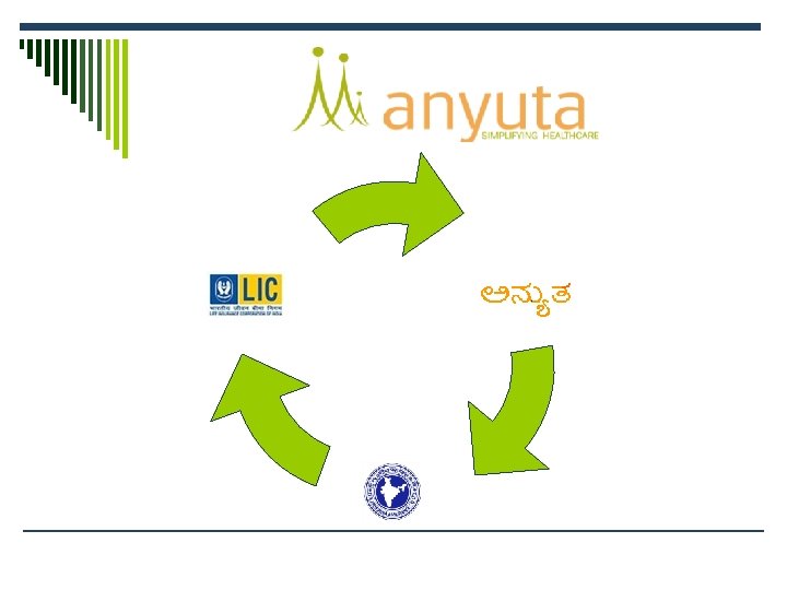 Anyuta - Pilot Project – Karnataka Make Services Work for People’ bring freedom from illness and illiteracy. INTGRATED SERVICES are Media Radio / T V / Print Life Insurance Corporation Of Indian Oil Corporation Anyuta Medinet Healthcare Pvt Ltd New India TPA in Healthcare IRDA - 17 Banks Assurance Co Ltd
