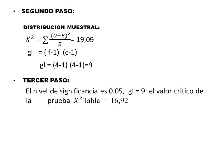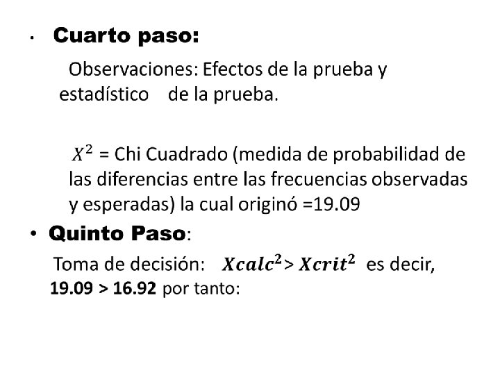 Sexto Paso: Toma de Decisión: Diagrama de la función chi cuadrado para la toma de decisión Chi cuadrada; gl=9 RA/HO RR/Ho 5% 95% Vt =16. 92 Vc =19. 09