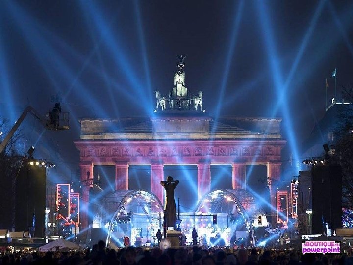 MAJESTUOSA LUCÍA LA PUERTA DE BRANDEMBURGO, EN BERLÍN. LOS ALEMANES NO SE QUEDARON ATRÁS EN LA CELEBRACIÓN