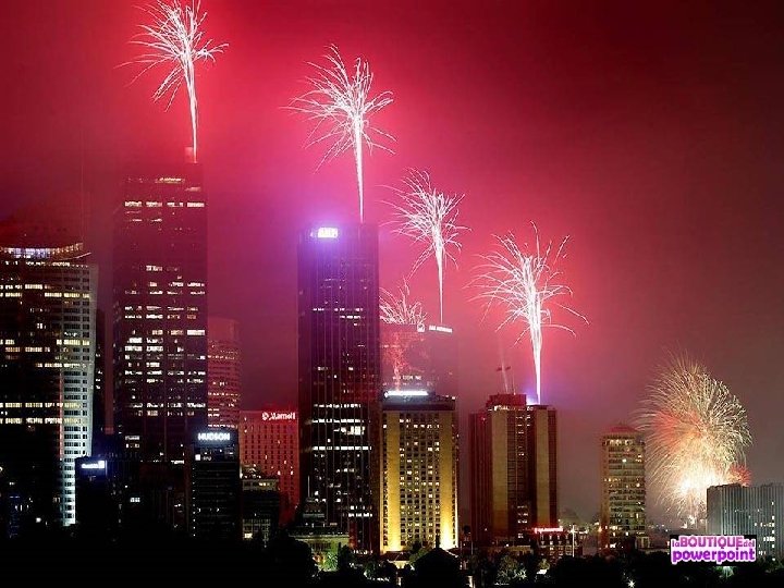 FUEGOS ARTIFICIALES ILUMINAN EL HORIZONTE DE LA ZONA FINANCIERA DE SINGAPUR