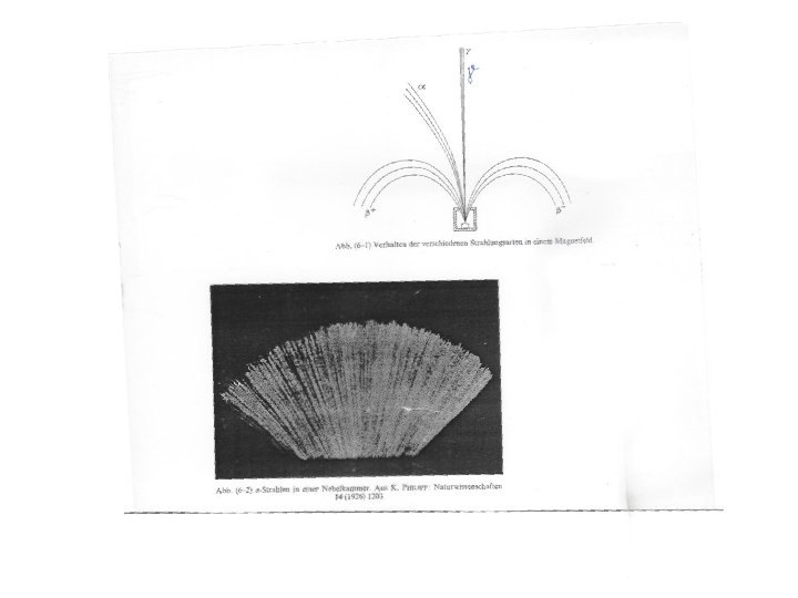 1898 E. Rutherford die neue Strahlung besteht aus 3 unterschiedlichen Komponenten, Unterschiedlich bezüglich Reichweite / Durchdringungsfähigkeit α Helium-Ionen β Elektronen 1902 Rutherford + Soddy: radioaktiver Zerfall verbunden mit Elementumwandlung! γ elektromagnetische Strahlung Folge eines α- oder β-Zerfalls Emanation: Entdeckung des radioaktiven Edelgases Radon