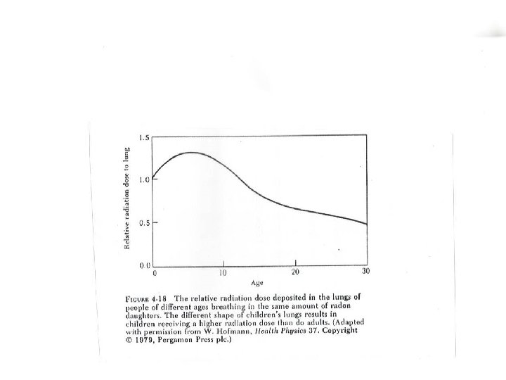 Das „Radon-Problem“ Rn-220: sehr kurzlebig (HWZ 55 s), d. h. bis es aus dem Boden herausdiffundiert, ist schon das meiste zerfallen Rn-222: 3, 8 d HWZ, entweicht aus dem Boden Edelgas, d. h. wird wieder ausgeatmet; Wahrscheinlichkeit, dass es in der Lunge zerfällt, ist gering, ABER: Seine Folgeprodukte sind Metalle, diese lagern sich in der Luft an Aerosole an und werden mit diesen eingeatmet; je kleiner die Aerosole (1µm und kleiner), desto tiefer gehen sie in die Lunge und desto länger bleiben sie dort. Die beiden α-Strahler Po-218 und Po 214 können dabei Strahlenschäden induzieren - Krebsvorstufen
