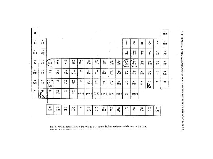 1907 ca. 40 radioaktive „Körper“ bekannt im Periodensystem aber nur mehr 12 Plätze frei! manche dieser „Körper“ haben unterschiedliche Lebensdauern und versch. Zerfallsprodukte, lassen sich aber chemisch nicht trennen! z. B. Thorium (232), Radiothorium (228), Ionium (230) alle mit Ordnungszahl 90! weiteres Problem mit Periodensystem: nicht-ganzzahlige Atomgewichte kommen vor, z. B. Chlor 35, 453