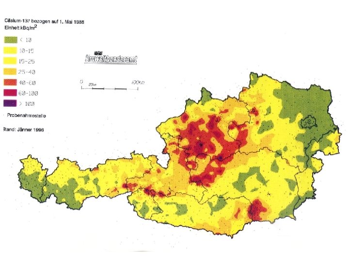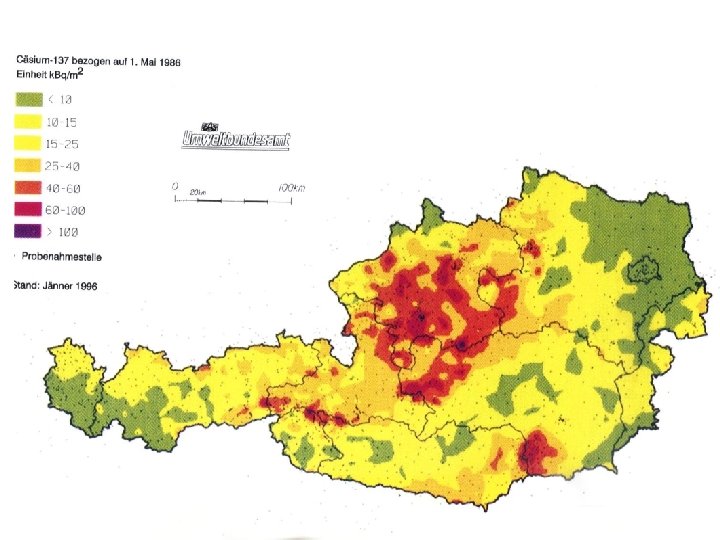 Österreich: die Belastung durch den Reaktorunfall in Chernobyl war ungefähr so groß wie am Beginn der 60 er-Jahre die Belastung durch den fallout von den Kernwaffenversuchen!!!