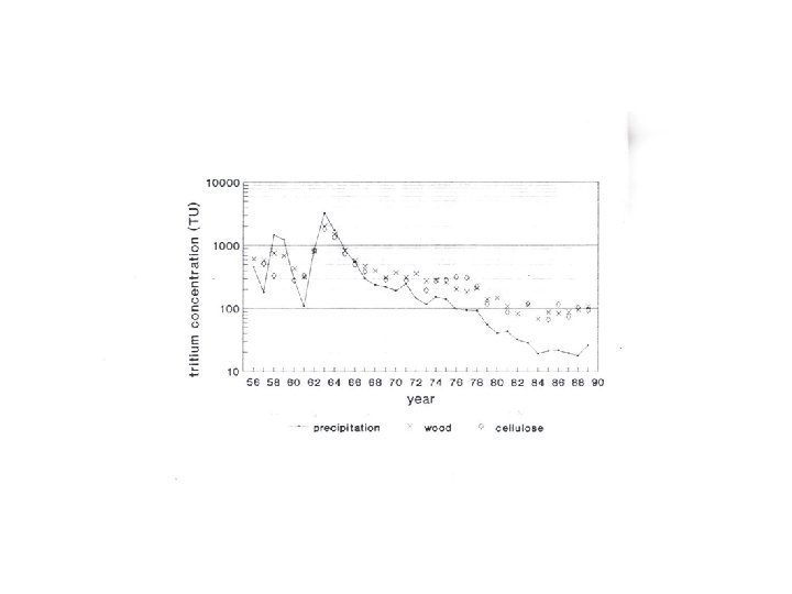 Der Reaktorunfall von Chernobyl, 26. April 1986 Radioaktive Stoffe in der Luft: Nuklid Jod-131 Die Radionuklide wurden vor allem durch Niederschläge ausgewaschen Natürlicher Hintergrund: 0, 20 µSv/h (Wien) Nach dem Unfall: Erhöhung um Faktor 3 -5, Höchster Wert: 2, 7 µSv/h HWZ 8, 04 d Cäsium-137 30 a Cäsium-134 2, 1 a Strontium-90 28, 5 a Strontium-89 51 d Ruthenium-103 39, 5 d Ruthenium-106 368 d Tellur-132 78 h