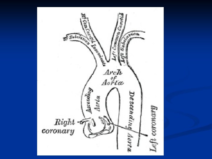 Ascending Aorta (Aorta Ascendens) n n n About 5 cm. in length Passes obliquely upward, forward, and to the right, as high as the upper border of the second right costal cartilage At its origin, three small dilatations called the aortic sinuses At the union of the ascending aorta with the aortic arch, the caliber of the vessel is increased, owing to a bulging of its right wall. This dilatation is termed the bulb of the aorta Only branches of the ascending aorta are the two coronary arteries